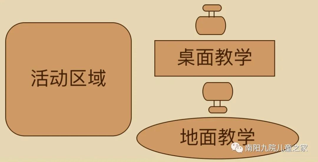 一般来说,新介入康复教育的孩子年龄都比较小(或能力比较弱或配合性比较差),不能坚持长时间的安坐。换句话说,孩子还不具备坐下来的能力。在新介入康复教育时,首先要建立的是康复教育人员和孩子之间的信任关系,并且消除孩子对于康复教育的压力感和焦虑感。所以,在康复教育的初期,一般要把起身活动、坐地面以及坐椅子这三大块结合起来使用。